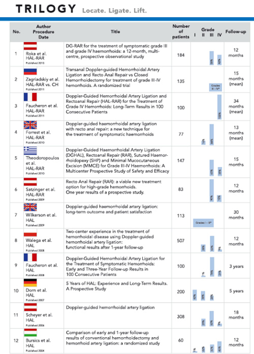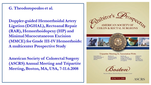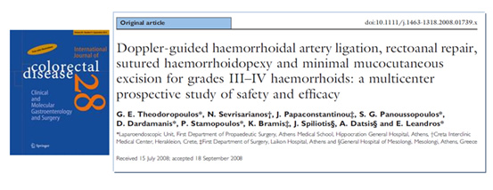 Στην Ελληνική πολυκεντρική μελέτη της οποίας ηγήθηκε ο Γ. Θεοδωρόπουλος, εκδόθηκε στο Ευρωπαϊκό περιοδικό Colorectal Disease το 2008 και στην οποία συμπεριελήφθησαν 147 αιμορροϊδοπαθείς, που είχαν αντιμετωπιστεί από 5 χειρουργούς με τη μέθοδο HAL-RAR, τα ποσοστά επιτυχίας και ικανοποίησης των ασθενών ξεπέρασαν το 95%. Η εν λόγω μελέτη αναγνωρίστηκε ως μία από τις πιο σημαντικές μελέτες που καθιέρωσαν την ασφάλεια και την αποτελεσματικότητα της τεχνικής HAL και περιλαμβάνεται μεταξύ άλλων Ευρωπαϊκών μελετών στην πιο πρόσφατη έκδοση του ενημερωτικού φυλλαδίου της σχετικής εταιρείας (A.M.I., Feldkirch, Austria).