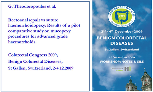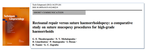 Σε μελέτη που δημοσιεύτηκε στο αναγνωρισμένο περιοδικό Techniques in Coloproctology το 2012 και βασίστηκε στην ανάλυση προσωπικής σειράς ασθενών του Γ. Θεοδωρόπουλου, αναδείχθηκε η ισοδυναμία της αποτελεσματικότητας της αιμορροϊδοπηξίας που γίνεται με συνεχή ραφή υπό άμεση πρωκτοσκοπική όραση με αυτήν της αιμορροϊδοπηξίας που καθοδηγείται από το ειδικό πρωκτοσκόπιο της HAL-RAR.