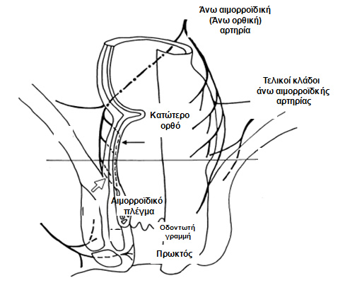 Το αιμορροϊδικό πλέγμα αιματώνεται αποκλειστικά από τους τελικούς κλάδους της άνω αιμορροϊδικής αρτηρίας
