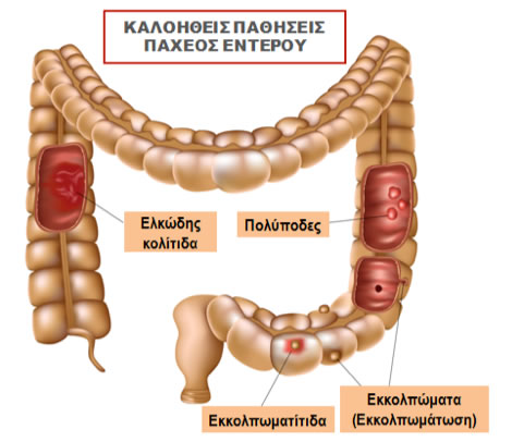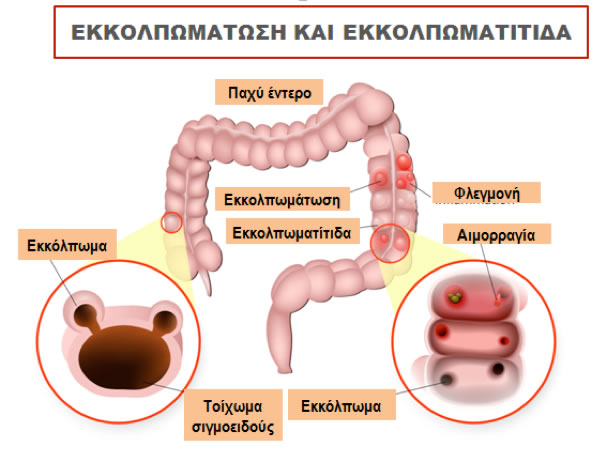 Επειδή μάλιστα μέσα στο σιγμοειδές κόλον αναπτύσσονται και οι ισχυρότερες πιέσεις, είναι εδώ που παρουσιάζονται και τα περισσότερα εκκολπώματα. Η δημιουργία εκκολπωμάτων προκαλεί αλλαγές και στη σύσταση του σιγμοειδούς, το οποίο γίνεται σκληρό, δύσκαμπτο και, πολλές φορές στενό. Η εκκολπωματική νόσος, μαζί με τους καλοήθεις πολύποδες και την ελκώδη κολίτιδα, αποτελούν τις πιο συχνές καλοήθεις (μη καρκινικές) παθήσεις του πάχέος εντέρου.