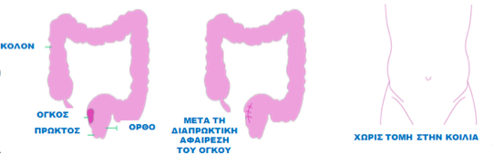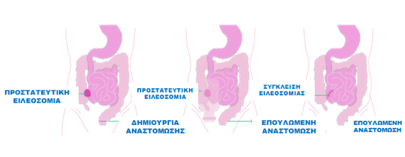 Μετά την αφαίρεση του παθολογικού τμήματος του παχέος εντέρου, το κόλον συνδέεται με το κατώτερο ορθό ή με τον πρωκτό, μία διαδικασία που ονομάζεται αναστόμωση. Έτσι ο ασθενής έχει τη δυνατότητα μελλοντικά να αφοδεύει από τη φυσιολογική οδό, δηλαδή από τον πρωκτό και να διατηρεί το σφιγκτήρα του.