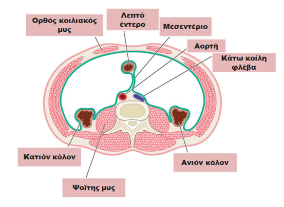 Το μεσεντέριο αποτελεί μια ανάσπαση του οπίσθιου τοιχωματικού περιτοναίου, με το οποίο το λεπτό έντερο συνδέεται με το οπίσθιο κοιλιακό τοίχωμα, ήδη από την εμβρυϊκή ζωή, όπως αναφέρθηκε παραπάνω. Το μεσεντέριο έχει λοξή πορεία και ξεκινά αριστερά από τη μέση γραμμή κατερχόμενο διαγώνια προς το δεξιό κάτω τεταρτημόριο της κοιλιάς. Συνέχεται με το λεπτό έντερο κατά μήκος του ενός χείλους του και συνεχίζει περιβάλλοντας το έντερο καθ’ όλη την περίμετρό του ως σπλαχνικό περιτόναιο, το οποίο και ονομάζεται και ορογόνος χιτώνας του λεπτού εντέρου. Έτσι το λεπτό έντερο είναι ένα πλήρως ενδοπεριτοναϊκό όργανο. Αν και το λεπτό έντερο είναι καθηλωμένο στο μεσεντέριό του, τούτο έχει ευρεία βάση επιτρέποντας στο λεπτό έντερο την ελεύθερη κίνηση μέσα στην περιτοναϊκή κοιλότητα χωρίς να αποφράσσεται. Το μεσεντέριο περιέχει λίπος, αιμοφόρα αγγεία, λεμφαγγεία, λεμφαδένες και νεύρα.
